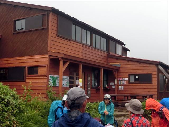 目の前に小屋が見えてきてほっとする。雨でかなり濡れてしまった。3時に到着。無事歩き通すことができた。(コメント:Ch.K)