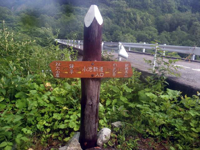 逆さ槍で有名な鏡池、残念ながら見えません ようやくたどり着いた小池新道入口