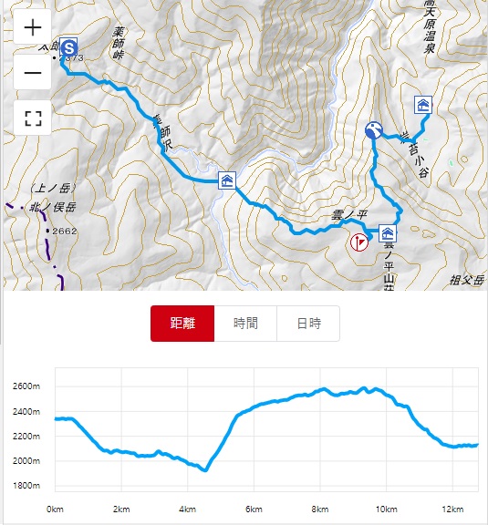 ここから今日の宿泊場所である高天原山荘への道はかなり急坂を下るコースです。