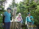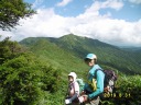 登山口を出発し、ハンノ木沢を渡って、堂岩山に到着した。白砂山までの稜線が、くっきり見え心が躍った。山頂直前の急登をやっと登り山頂に到着した。嬉しかった、感謝した。すぐに写真に納まるつもりでいたが、KYさんがバクダンの様な細長い丸い物に蛍光ペンで何か書いていた。気にもせず、それを持って写真に納まった。「八木さん、おめでとう」と書いてあった。そのバクダンは、なんとスイカ・・・おいしい、おいしいスイカであった。重いスイカを山頂まで持って来て、お祝いしてくれたKYさん、横断幕を作成してくれたYIさんHYさんに感謝して、登ってきた道を下山、記念すべき一日が終了した。YIさんKYさんHYさん本当に有難うございました。今後とも、ご指導宜しくお願いします。