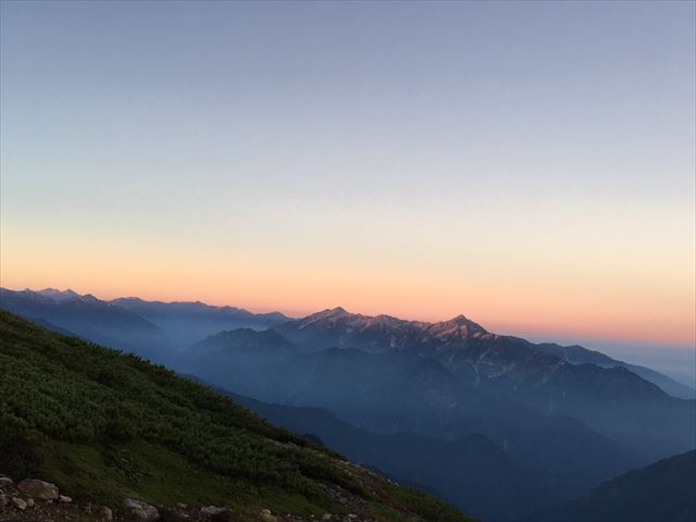 明るくなって来ました。遠くに槍ヶ岳も