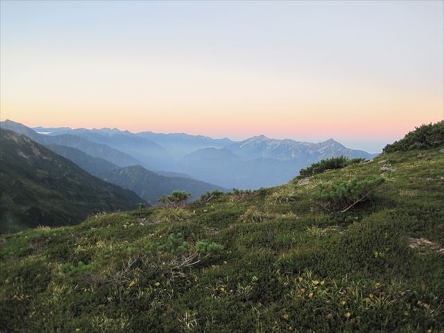 少し明るくなってきました。剱から槍までがくっきりと