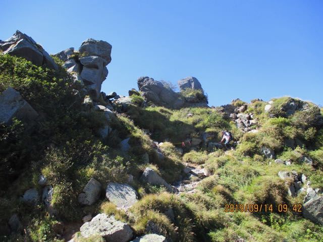 晴天の連休初日、多くの人が山頂を目指しています