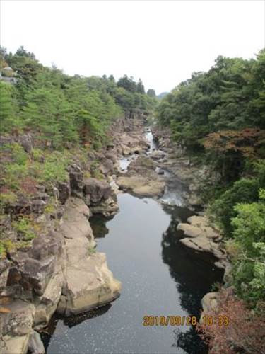 厳美渓、栗駒山の噴火により堆積した岩が長い年月をかけて削られて出来た