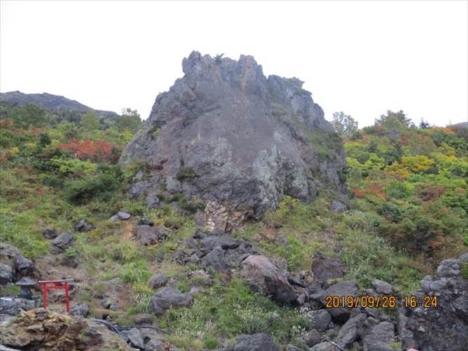 この大岩は先の地震で上部が崩落したそうです