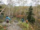 頂上付近は風が強く寒かったので、一枚着込んだ。頂上から下りた風のないところで早目の昼食にして、そこから前白根山方向に向かって下って行った。