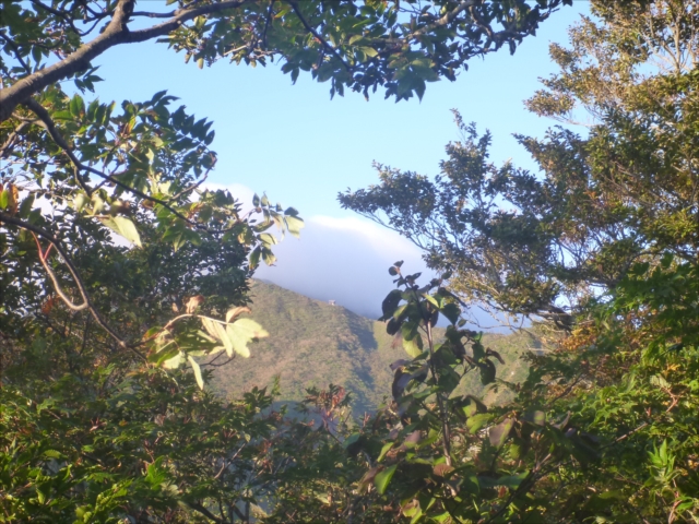 ユートピア避難小屋が枝の間から覗いた