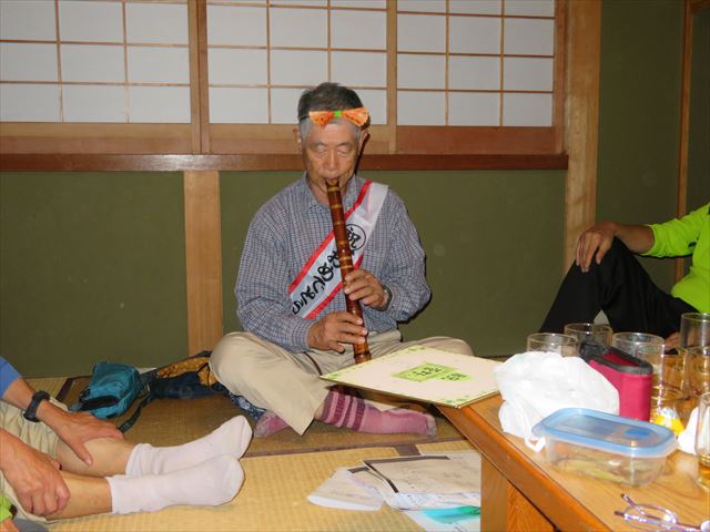 喜寿メンバーKさんの尺八の演奏。皆さん芸達者ですね!