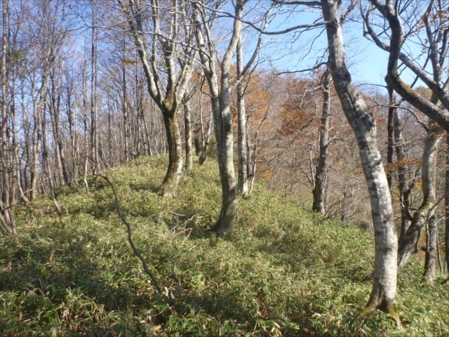 丈が伸びた笹薮の先が三依山か