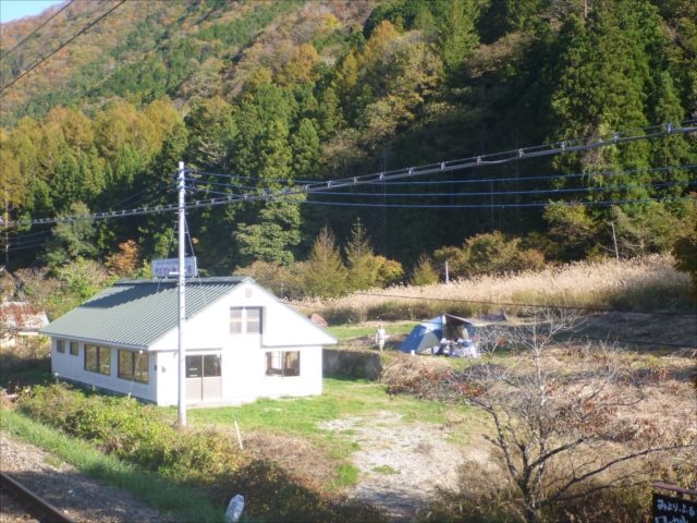駅下のキャンプ場に家族連れ大テントと温泉であった若い人のテントが、無料かな、立派な蕎麦工房も