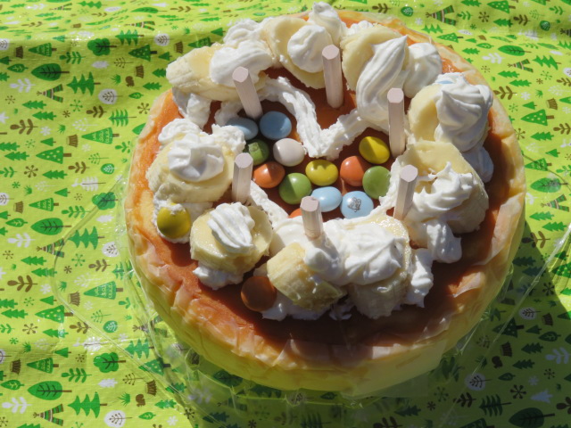 山頂でトッピングして、皆でお祝いしました。そのケーキです!