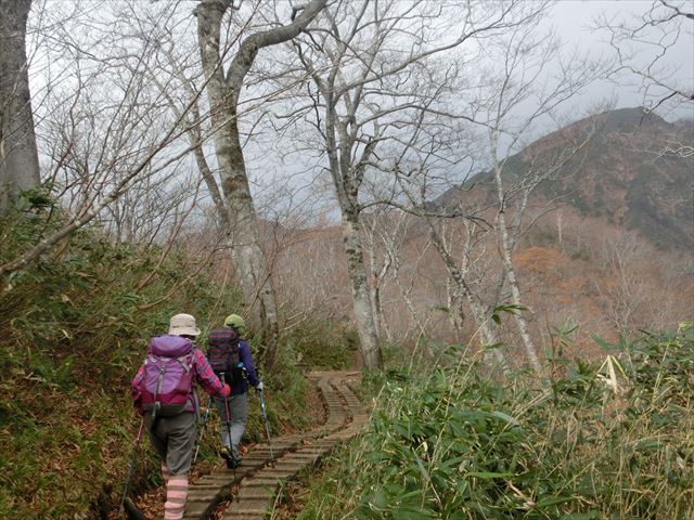 空模様が怪しくなってきました。木道を歩きます。