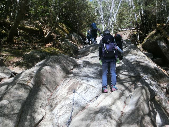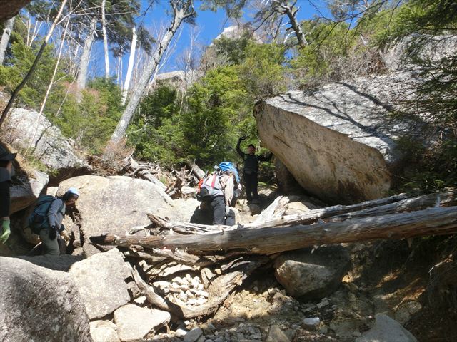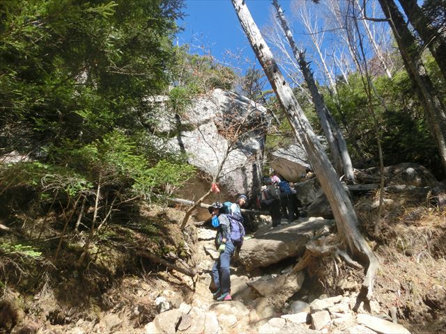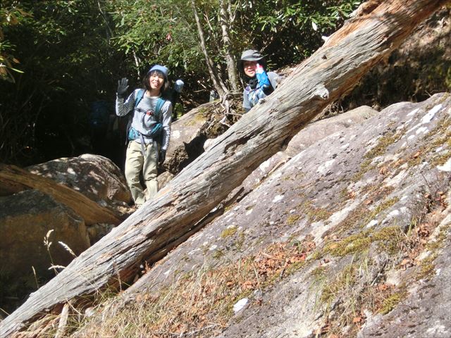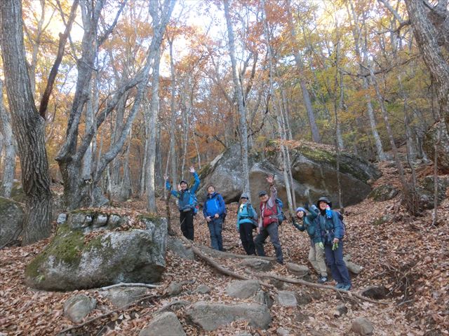 自身にとっても前回の乾徳山の下見以来の山行で天気も気分もよく山歩きを楽しめました。下調べの通り、岩場が多くYO.SさんとE.Oさんは、
