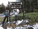晩秋の八ヶ岳・縞枯山に行って来ました。2,000m以上ではもう既に紅葉が終わっているとの情報で、予報ではかなり寒そうだったのですが天気はバッチリ!で、Iさんの車の窓から美しい紅葉を眺めながら麦草峠へと向かいました。(←この時点で期待大) ところが!!峠が近づくにつれて道路わきに白いものが・・・。雪でした。寒さは予想していたものの雪は想定外だったので、登山口の駐車場まで無事に行くことが出来るかどうか不安がよぎります。道路にも雪が薄く積もっていましたが、何とか峠の駐車場に到着。駐車場には4~5台の車がありました。