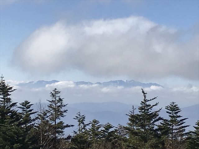遠くの山はうっすらと雪を被っています