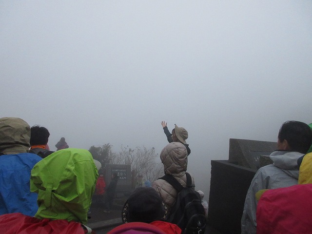 添乗員さんの手の先に三原山?