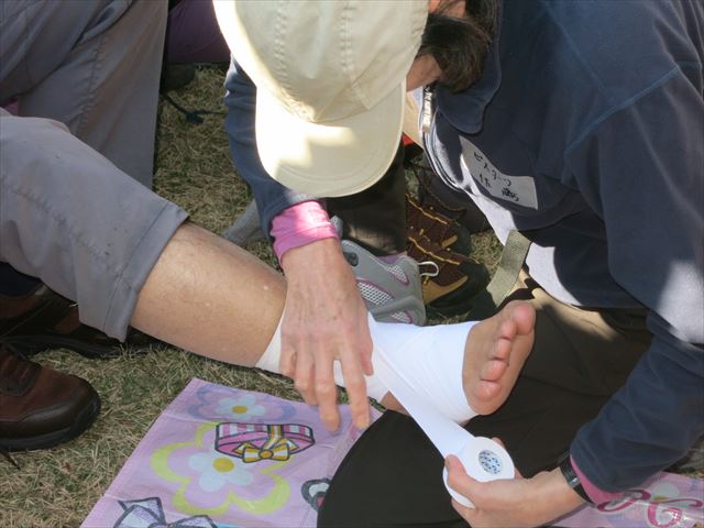 上手なスタッフにテーピングをしてもらっています