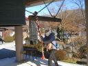 天正寺は山側の高台にあり、寄居の町が見渡せる。立派な鐘楼があり突いてもいいとのことで、ゴ~ン。余韻は2分も続くらしい。立派な山門を構えた正龍寺を後にして善導寺で昼食にする。門を入ると蕾をいっぱい付けたこぶしの大木が春を待っている。東屋をお借りしていつものにぎやかなお昼ごはん。