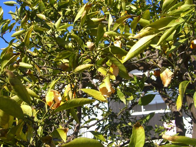 鳥が上手に皮だけ残してみかんを食べてます