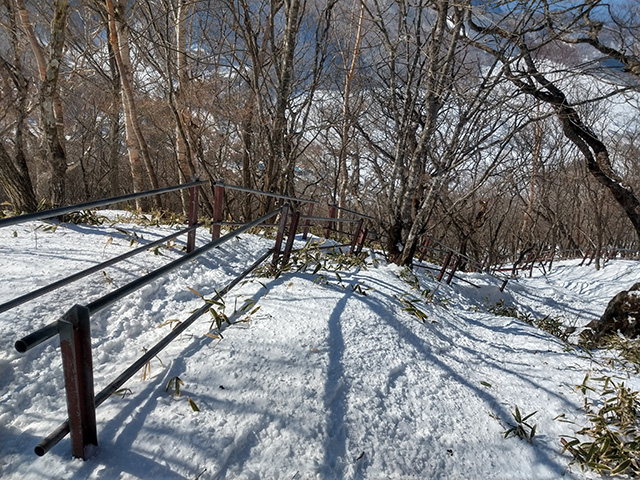 M.Sさんと行った至仏山・燧ケ岳山行でアイゼンを壊したので、コパ付きの冬靴とワンタッチアイゼンを新調した。去年のクリスマスに泊まり山行で使うハズだったのに体調すぐれなく使わずに年を越し、悶々としていた時にタイミングが合ってやっと歩いてきました。関東平野の眺望は表紙の写真の通り左側が曇っていて望めなかったのですが、北側は谷川岳、武尊山、至仏山、日光白根、袈裟丸山、男体山まで見渡せました。 平日山行でしたのでヤマップのこんにちわ通信も3人と少なく、誰もいない稜線歩きをゴーグルの中で終始ニコニコしながら歩いていました。下降点からの鉄階段は雪不足の影響からか所々階段が露出しておりすっかりアイゼンの歯が丸くなってしまいましたので帰ってから棒やすりでメンテしました。