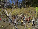 その右端に両神山がゴツゴツした山容でくっきり見える。 満開のロウバイの中、人出も多い。私達は切り株をベンチにしてランチタイム。黒1点の人が皆にお汁粉を配ってくれる。いつもご馳走様です。