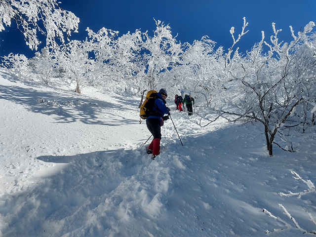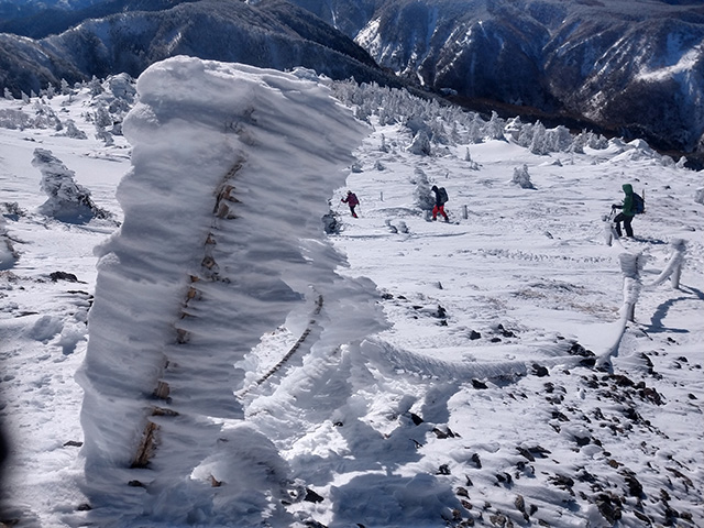 時には、厳しい天気の時も有りますが、雪を纏った山登りをやめられない理由は多分、街では触れることのない情景に会いに、そして感じるために行くんだろうと思う山行でした。