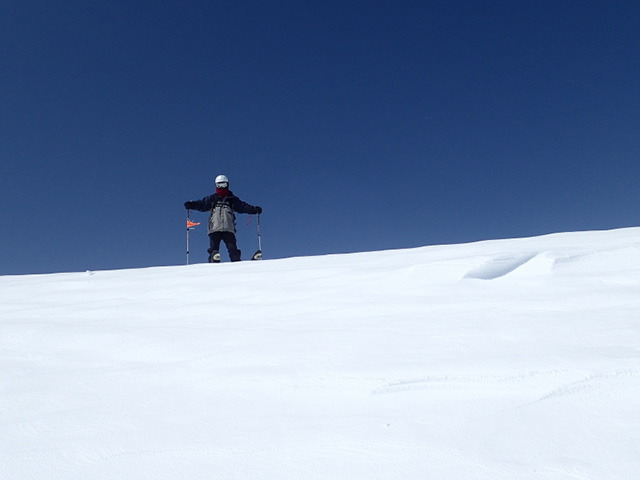 ようやく尾根に取り付き、何とか滑り切ってスキー場ゲレンデから和田小屋に到着した。
