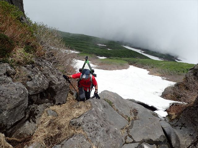 雪がなくなった箇所は岩場の通過となります