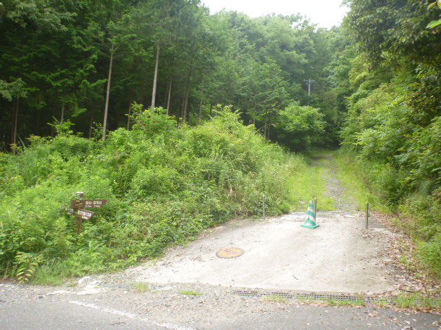 分岐に道標、堂山はこの林道の先だ車進入禁止
