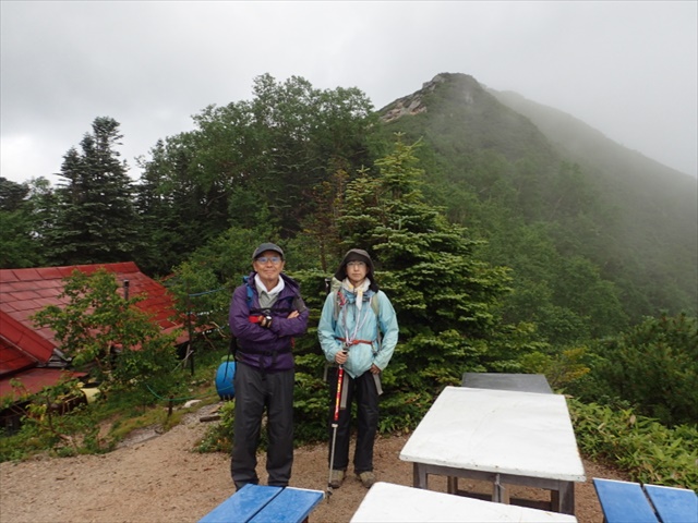 餓鬼岳小屋前、バックが山頂です