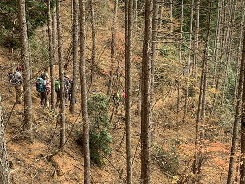 黄葉の林間を下る