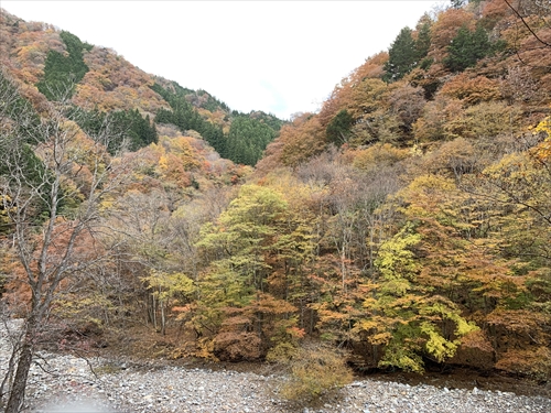 谷川の対岸も燃え立つ風景