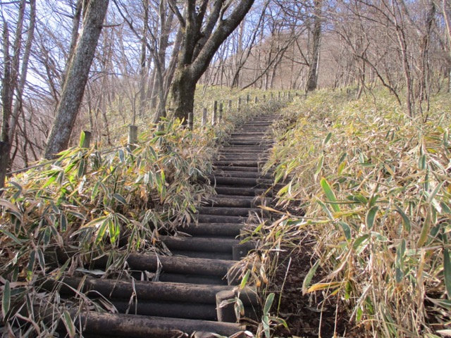 ずーっとこんな階段です。土も流れていて丸太の階段も怖い