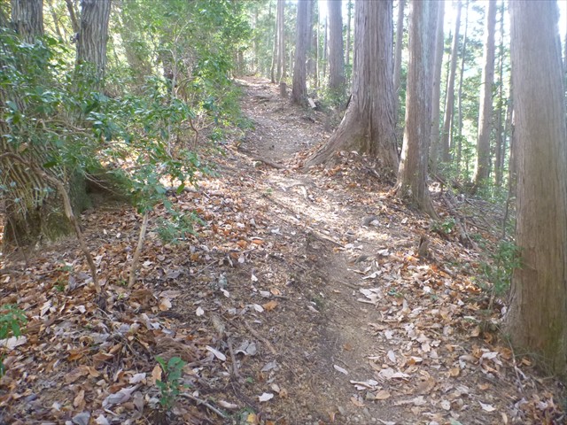 昼食を終えて、なんと御嶽山から広い踏み跡が吉田山へ延びる、東は広葉樹、西は杉檜