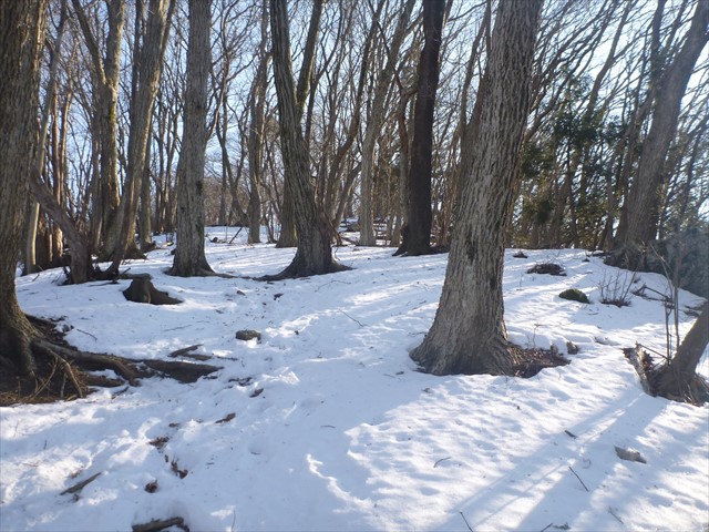 ふれあいの道の残雪に踏み跡が続く