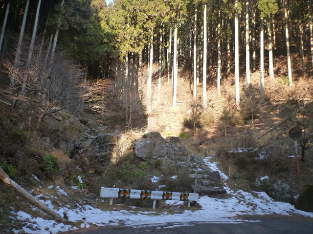 高麗川源流の碑、右に刈場坂峠への徒歩道