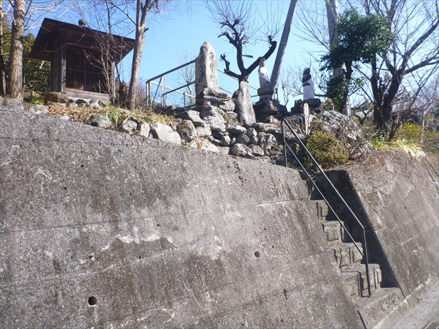 国道R299北側法面の上に石碑と小さなお堂