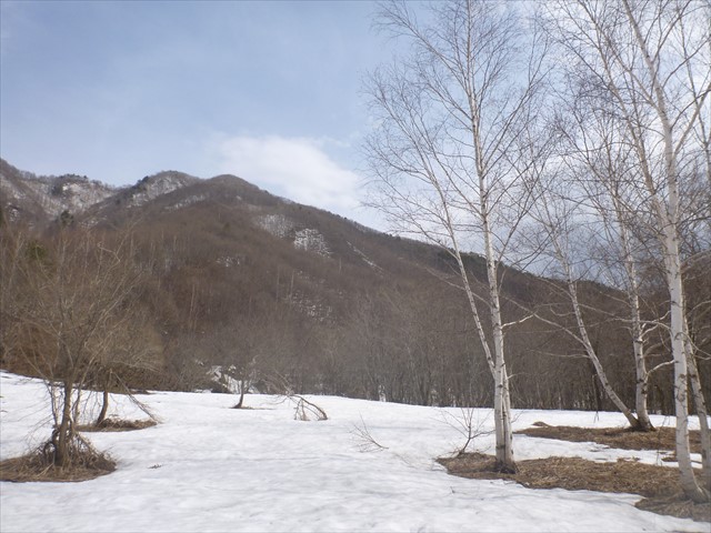 町道から下ってきた尾根を振り返る