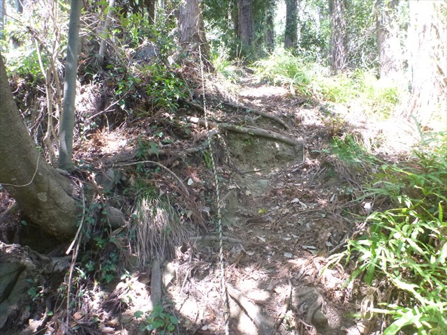 近道には急坂岩場ロープあり