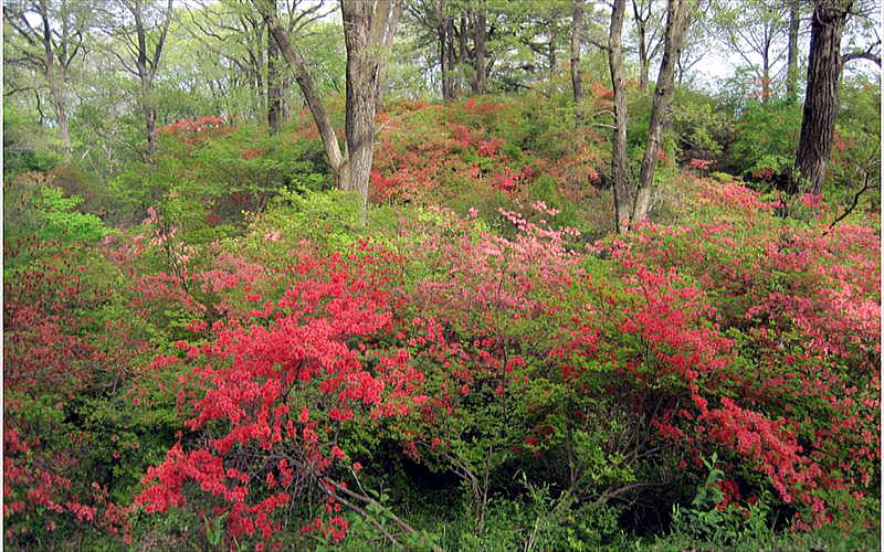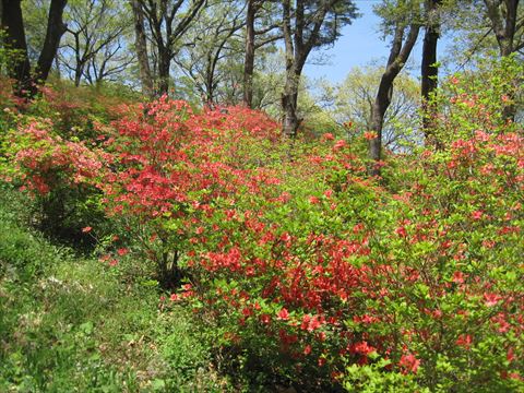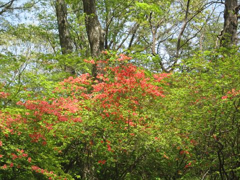 例年は5月になってから歩く愛宕山・皇鈴山ではあるが、コロナで密を考え、一週間早く歩いてきた。満開ではなかったが、緑の中に赤やピンクが映えて素晴らしかった。ハイカーも少なかった。