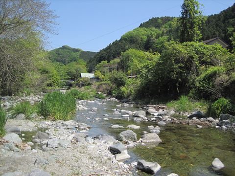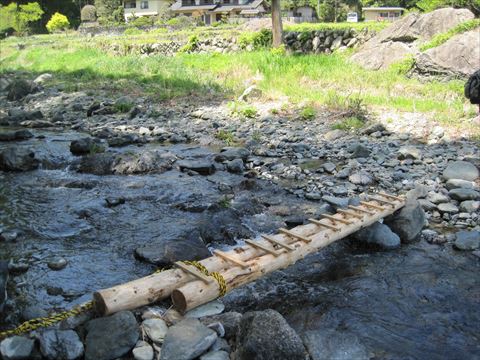 手作りの橋を渡ります。古い橋は、流されたのかな (-_-メ)