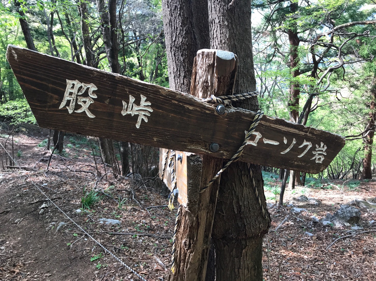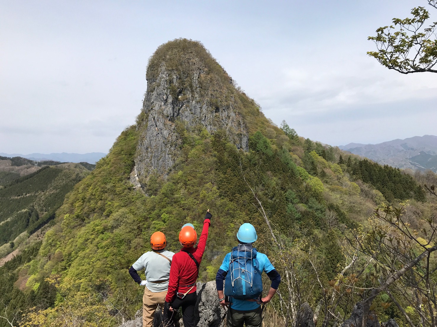 【日 付】 2021年5月1日(土) 【メンバー】 L:YO.Y 参加者:yu.I yo.t na.u 【コースタイム】8:00 登山口駐車場 ~ 09:00 股峠 9:40 ~ 東岳頂上 11:00 ~ 西岳登山口 ~ 11:40 西岳頂上 ~14:00 登山口駐車場 【コメント】 岩場歩き岩場歩きのトレーニングに小鹿野町の二子山に登った。登山口から股峠までは急登で道も所々崩れていた。 ニリンソウの群生地には蕾が沢山咲いている。 峠にザックをデポし、ヘルメット、簡易ハーネスを付ける。Yさんにカラビナに細引きを付けすぐ使える状態にする方法を教わる。 東岳に向かう。少し左側を登るとクライミングの練習場があり、岩には長いロープが下がっていた。 いつも多くのクライマーを見かけるが、練習場を見たのは初めてだ。出来れば練習風景も見たかった。 東岳へ登る。 難所のステップの付いた急斜面をトラバース、下を見てはいけない、足がすくみます。 痩せた岩場を登ると突然視界が開ける、ビューポイントだ。目の前にはこれから登る西岳が聳え立つ。 麓の集落や折り重なる山並み、新緑と山桜、フジの花が快晴の空の下美しい。 股峠に一旦戻り西岳上級コースへ向かう。垂直の岩を慎重に登る、岩は石灰岩で滑りにくく、木もありホールドは確保出来るので見た目より怖くない。一般コースと合流すると、間もなく山頂に着く。ここからはスリル満点の稜線歩きになる。 足場が見えない!先行く人に指示を仰ぎ慎重に通過する。最後は長い鎖の付いた岩場を一気に下りる。 登山口まで戻る道は誰がつけたか《山菜の小道》蕨を沢山摘みながら山を何度も振り返りながら歩いた。 皐月晴れの二子山、岩稜歩きを楽しんだ。 ニリンソウ
