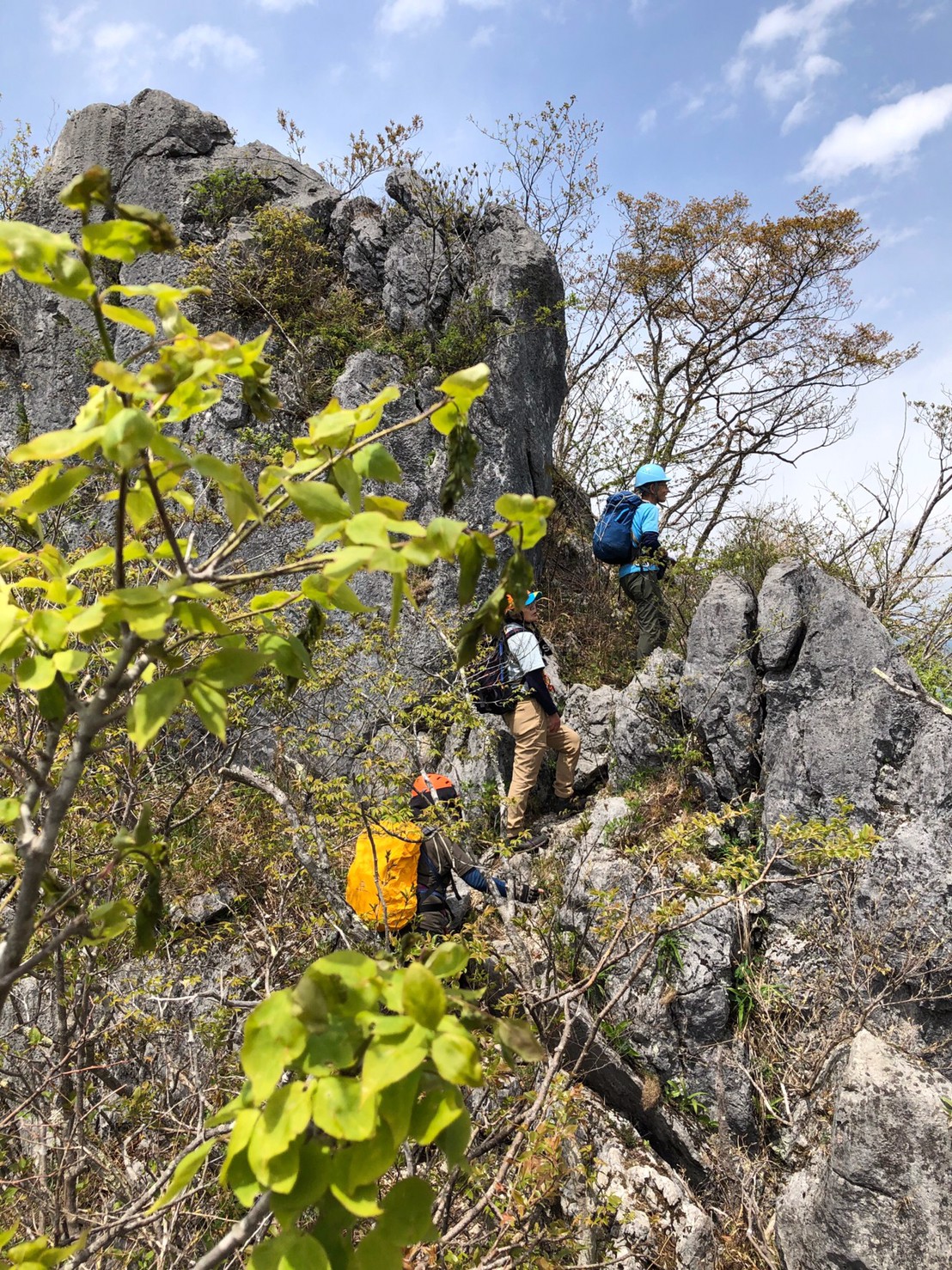 先頭を行くYリーダーの後を間隔を空けて登る