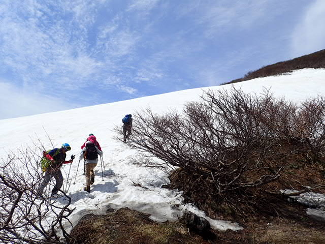 休憩後、七ツ釜避難小屋から登山班が出ていきます