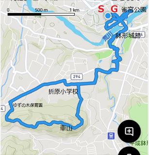 【コースタイム】 太子様駐車場 10:15 → 雀宮公園 10:30 → 玉淀河原 → 鉢形城址 11:35 → 車山登山口 12:00 →