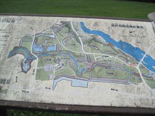 渡るとすぐ鉢形城址です。 鉢形城跡曲輪配置図。荒川が城を守っています。