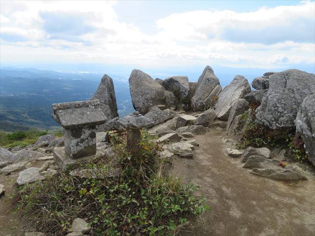 祠と奇岩がゴロゴロしている山頂