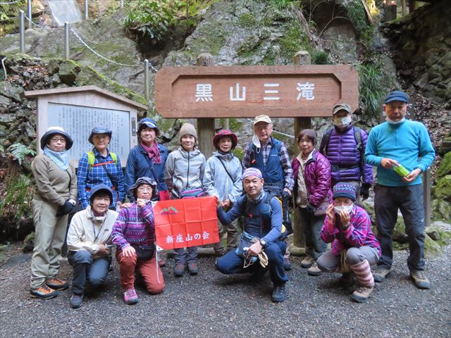 女滝・男滝の前で全員集合!13名参加