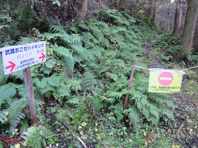 傘杉峠との分岐(まだ通れません)。役行者方面に進みます