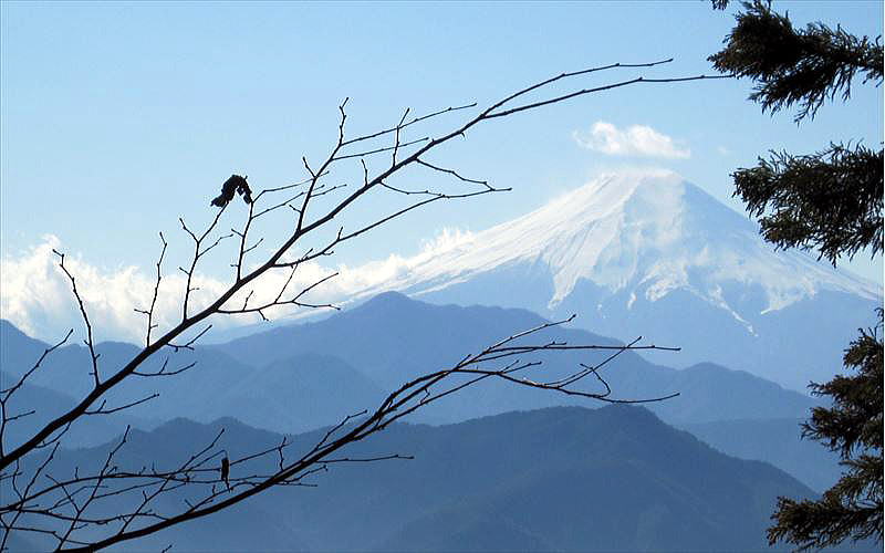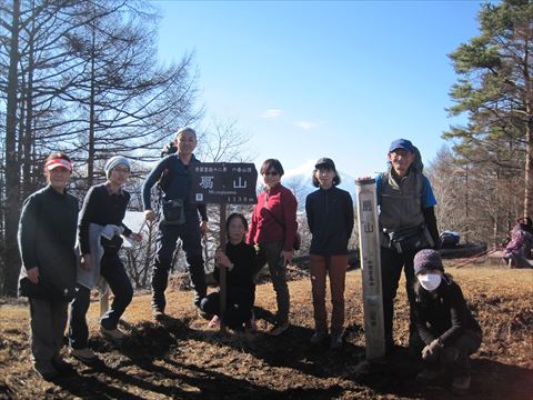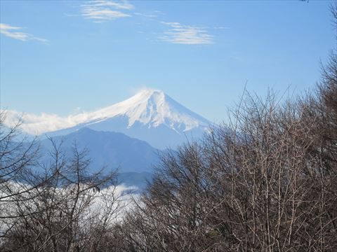 TさんとSさんの新人歓迎山行である。天気快晴、青い空のもと、心も身体も清々しく歩く事が出来た。頂上に着くと素晴らしい富士山が、大きくクッキリと